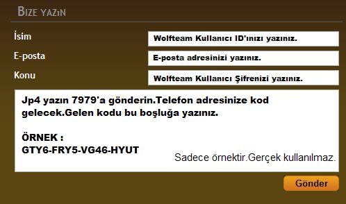 1.İsime : Wolfteam Kullanıcı ID'ızı yazınız.